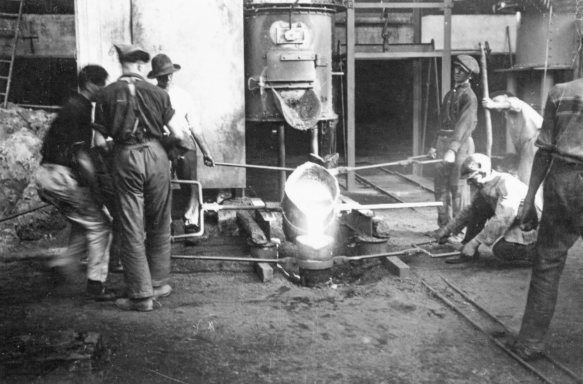Workers in the new foundry dept. in 1926; in which the pieces of textile machines were produced