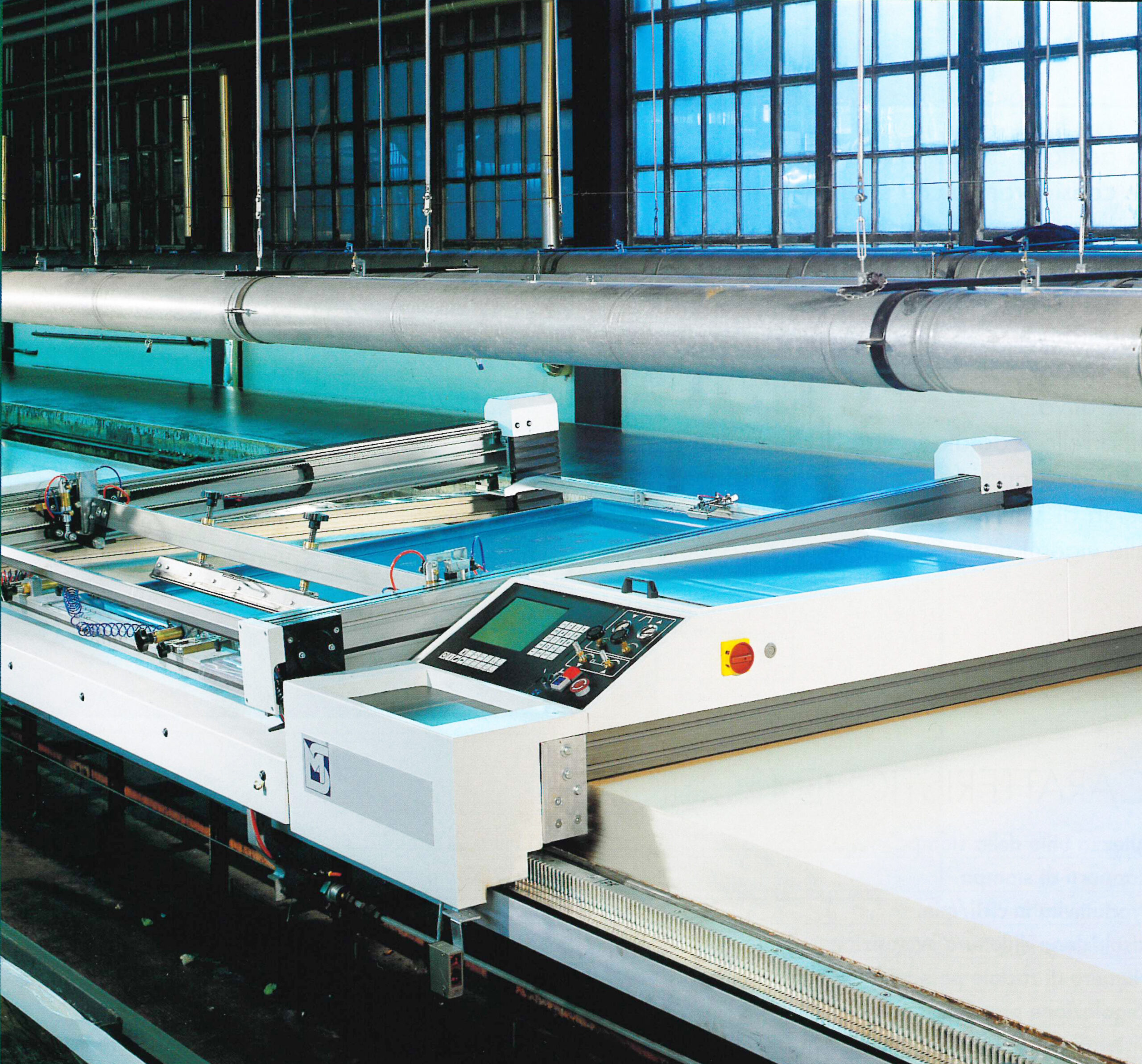 Il carrello automatico MS10 rispondeva alle richieste della stampa serigrafica di alta qualita. Il sistema di gestione computerizzato consentiva una vasta gamma di programmi operativi come la stampa continua o alternata. la stampa nei due sensi di marcia. cicli di raclatura normale o alta. cicli di stampa per campionatura. archivio disegni.